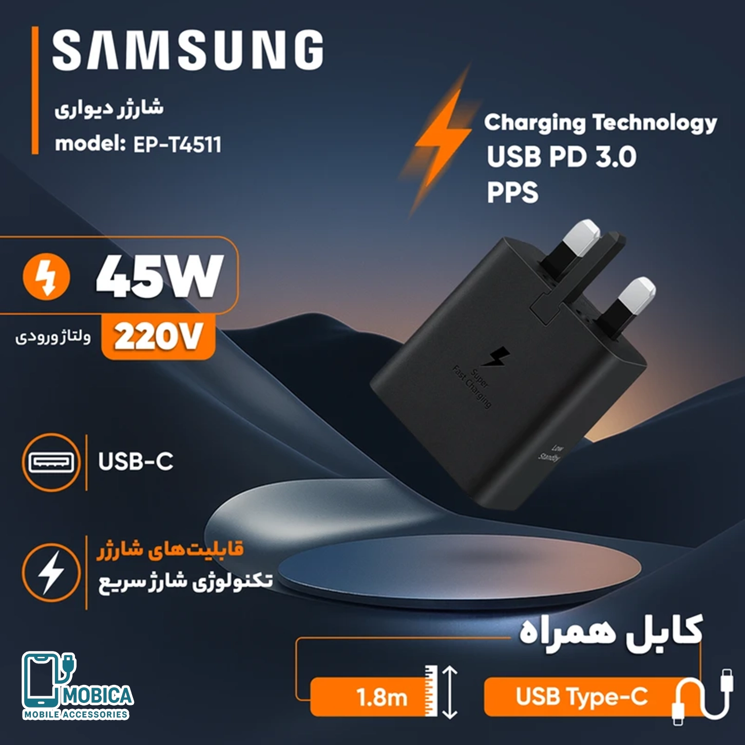 شارژر سامسونگ Galaxy S25 FE اورجینال ۴۵ وات همراه با کابل اورجینال (گارانتی)